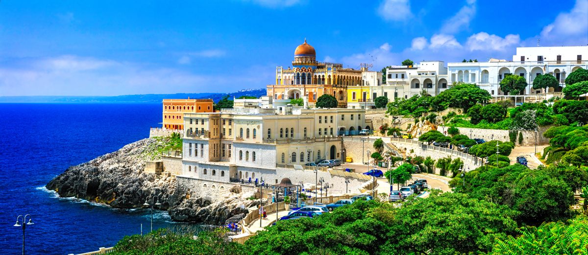 Santa Cesarea Terme è un piccolo centro di tremila abitanti che sorge su una grande scogliera a strapiombo sul mare, Castro dista pochi km. Lungo questo tratto di costa è possibile apprezzare scogliere e un tratto di costa meraviglioso.
