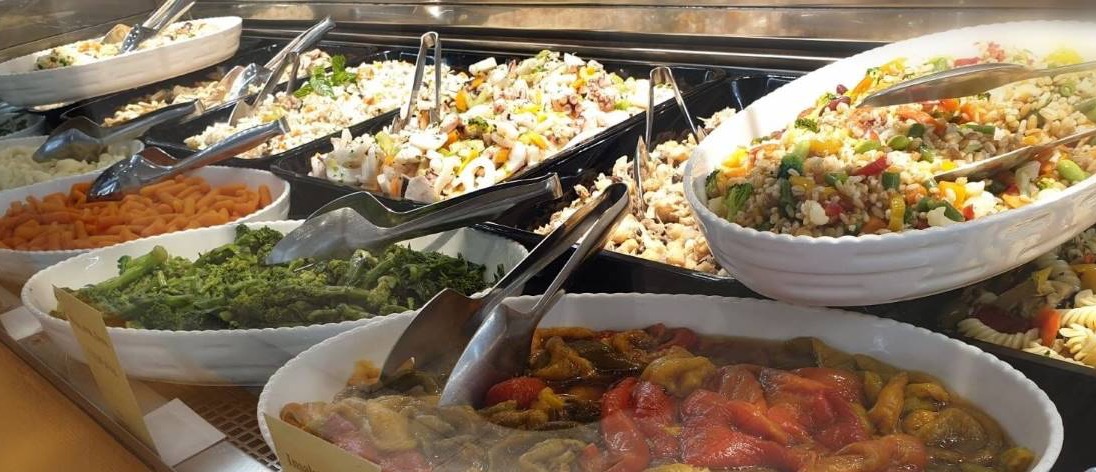 Una tavola calda dove è possibile scegliere in vetrina cosa mangiare.