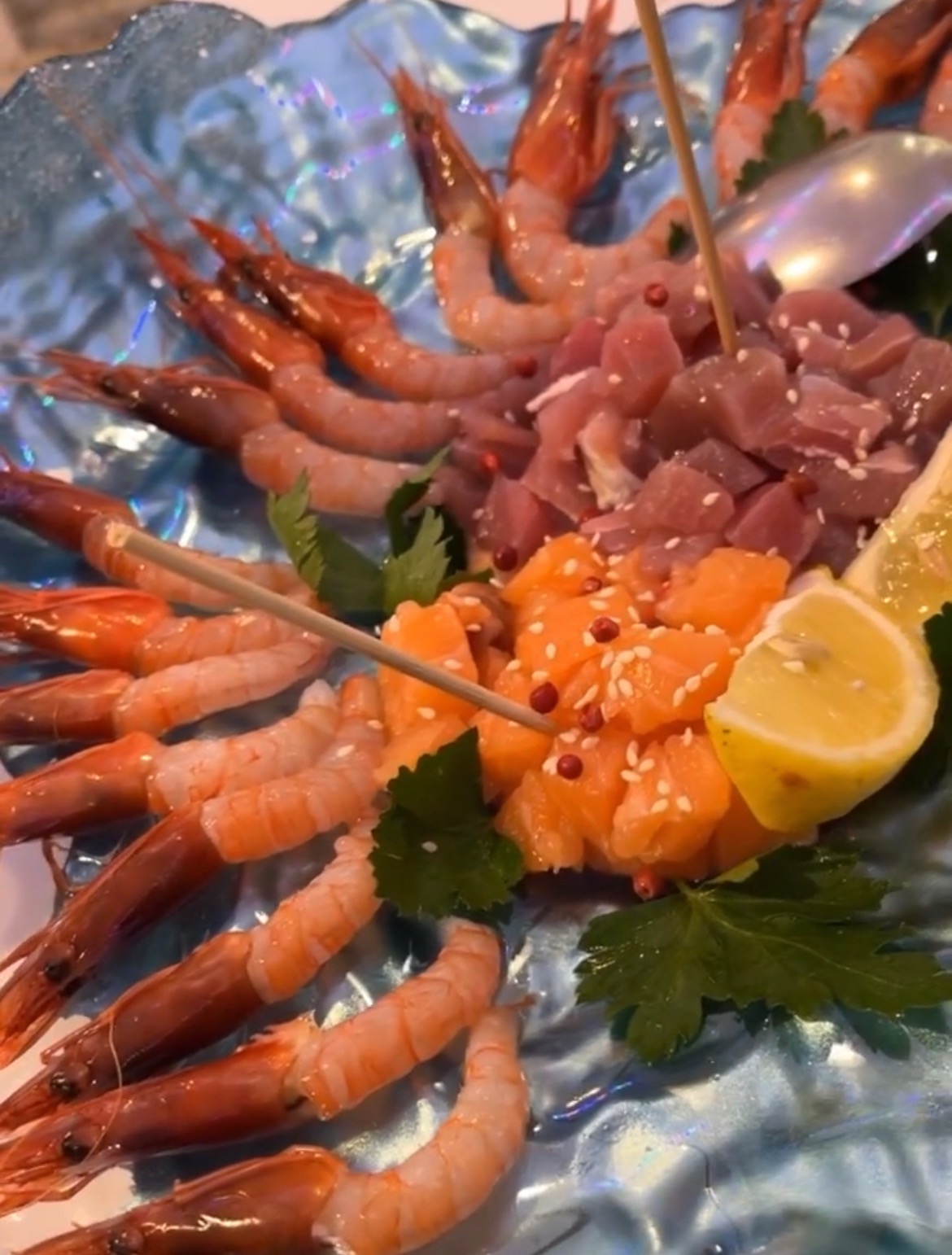 Consigliata la degustazione di pesce crudo. Potete gustare il delicato e gustoso Gambero Viola gallipolino.